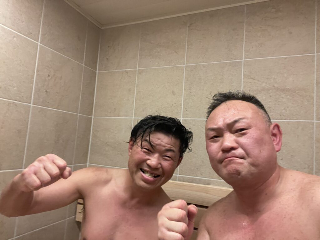 サウナの後は、コージーさんの弟さんが経営する1Fの居酒屋で美味しいビールをいただきながら
