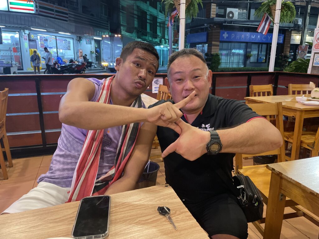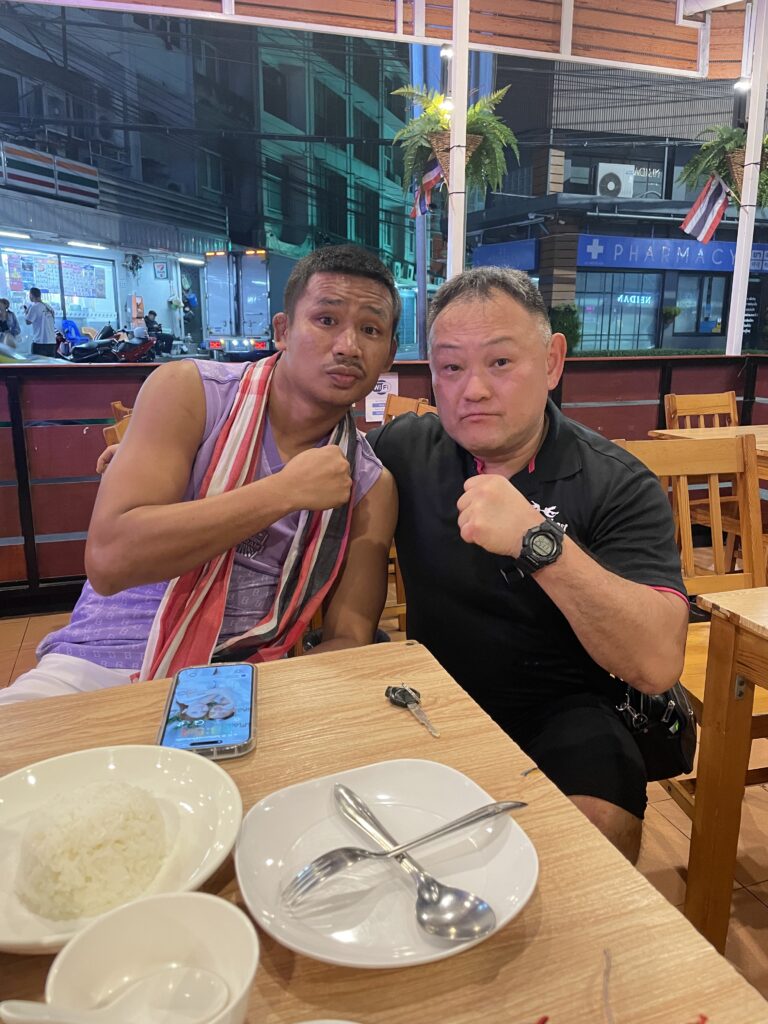 また、その後立ち寄ったタイ料理店で、ONEで武尊選手と激戦を繰り広げたONE王者、スーパーレック選手と偶然臨席し、交友を深めました!